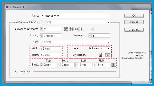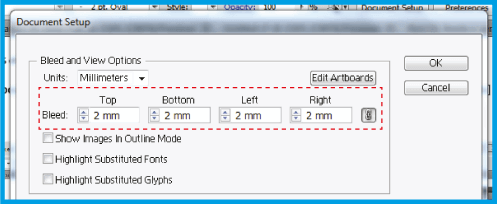 .Plaats in de optie 2 mm (het is aan te raden deze dimensie te plaatsen voor elk document dat u maakt).