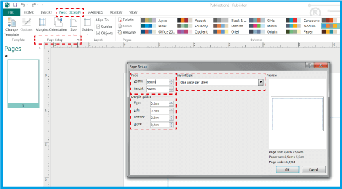 .Zorg ervoor dat u 4 mm (0,4 cm) aan de hoogte en breedte van uw document toevoegt. In het geval van het visitekaartje van 8,5 x 5,5 cm voegt u 8,9 x 5,9 cm in.