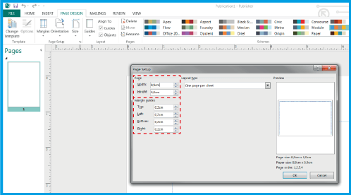 .Ga naar (rechterpijl).U opent een venster (afbeelding hieronder) waar u de instellingen van het document kunt definiëren.
