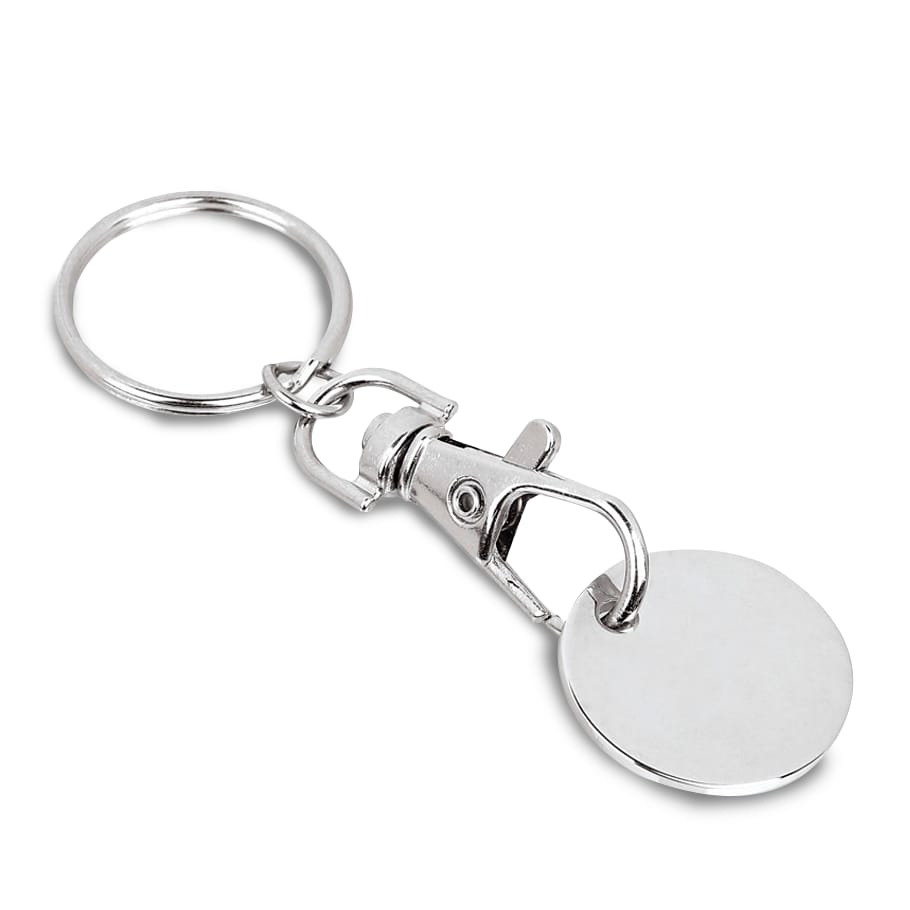 Promote your brand with customizable coin-shaped keychains. Made of durable metal, perfect for promotion. Personalize them with logo, design or slogan. Create a unique product. Personalize today!