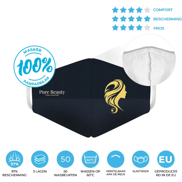 Dit mondkapje is een van onze klantfavorieten, dankzij het comfort, ademend vermogen en de totale personalisatie-optie.